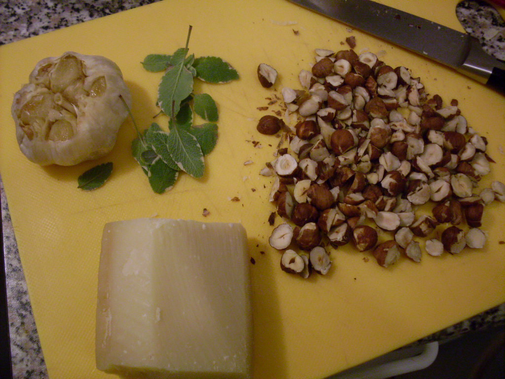 Let simmer for two to three minutes, then toss with sage and hazelnuts. Let sit for another minute. Grate a bit of cheese over top, and season to taste.