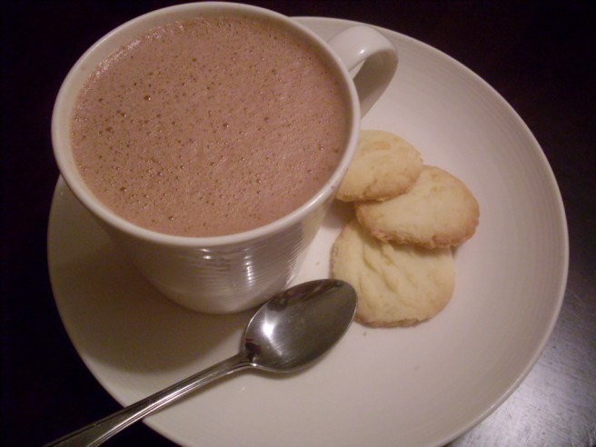 This is rich stuff, and can work all on its own as dessert. It’s sweet, but not too sweet, and layered with spicy, robust flavours – dark chocolate, coffee, vanilla, and spice. It’s robust. It’s infinitely better than any seasonal hot chocolate that you’ll find at Starbucks or its ilk. And it goes well with the smell of wrapping paper, cookies, and tree.