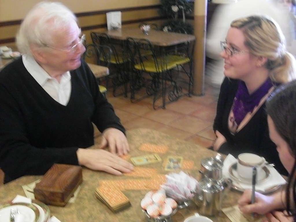 Today I met Tracy and Miss Rosa at Notte’s Bon Ton, a bakery on Broadway where you can get cups of tea, small bites of sweet things, and your fortune told. James, the tarot card reader, was entertaining, and surprisingly insightful, even to those of us who doubt everything we can’t see and most of what we can.