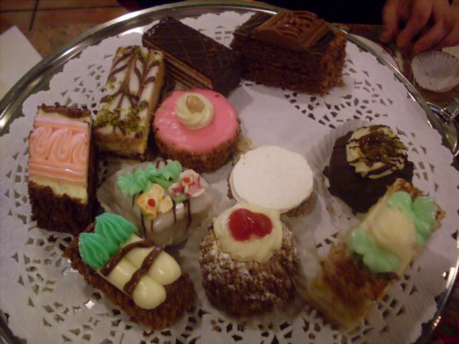 It was cheap, too. Ten dollars for the tarot reading, five dollars for tea and a sandwich. A dollar and a bit per little treat, and two dollars or so for the cream puff. It’s the kind of place you’d take your grandmother to, and which she’d be delighted by. You can buy cakes and cookies to go, and they make wedding cakes, which I imagine would be delicious, and swathed in shiny butter cream.