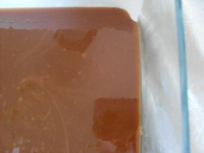 After 30 minutes, sprinkle salt over top of the caramel. Let rest for two hours.