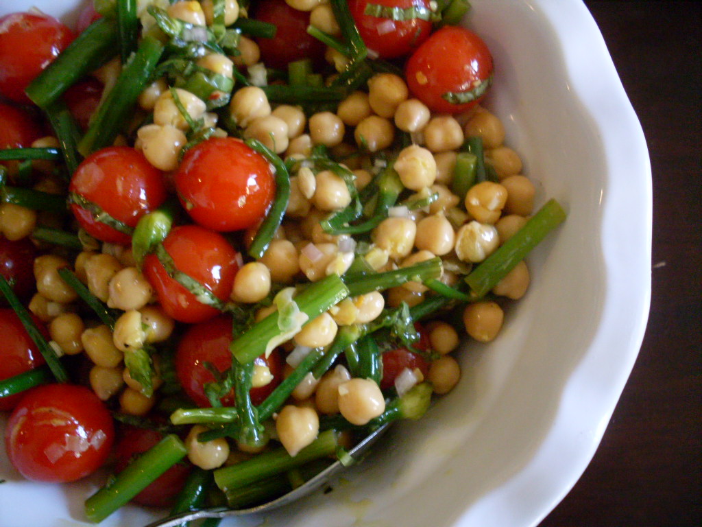 Garlic scapes and chickpeas and tomatoes. Hooray!