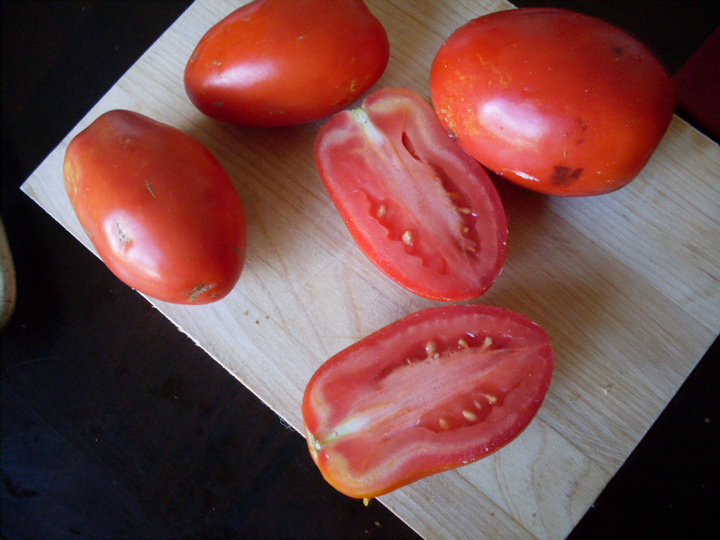 We’re getting to the best time of the year now. The tomatoes that were so bright and lovely a few weeks ago are now mottled and sweet, and they beg to be roasted low and slow or stewed down for sauces, and since the air outside has cooled a bit I have no reason not to but oblige them. On Alana’s advice, I roasted a whole bunch of field tomatoes last week and stuck them in the freezer, but I still had a few romas, a hankering for bread and cheese, and a resurgence of old lady disease in my limbs, hands, back, and left big toe that made me not want to put in a lot of labour.