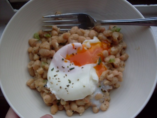 You might think beans are a weird thing to serve with breakfast, but trust me on this one. This dish is creamy and rich like a hearty bowl of oatmeal, but it takes less time and also contains garlic and rosemary, which oatmeal does not have going for it. Also, it takes less than five minutes, which makes breakfast something you might actually be able to achieve in the morning. Or maybe I’m the only one who battles her own will and chronic fatigue to accomplish the simplest of tasks before noon? That could well be, come to think of it.