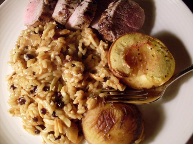 Risotto with currants, almonds, and orange