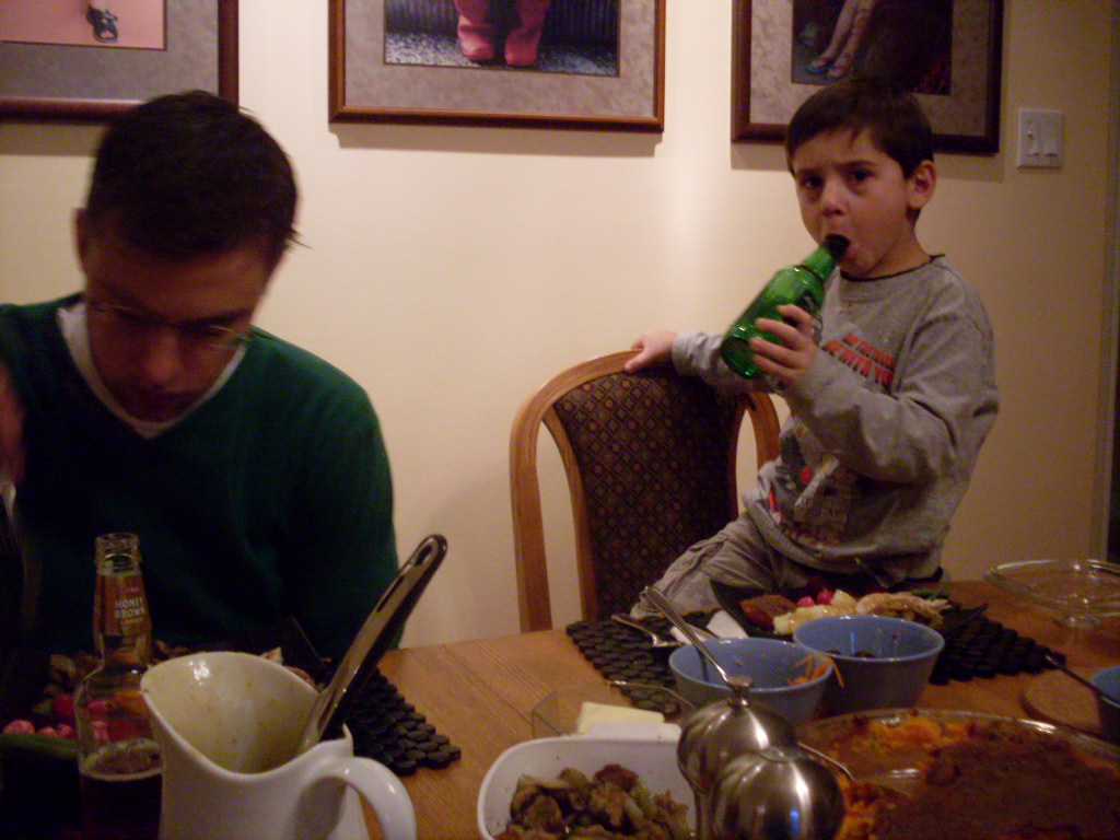 I think he’s mimicking behaviour he sees from his aunt and uncle. That’s a soft cider, by the way.