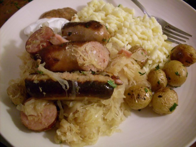 Cauliflower is one of my favourite vegetables, probably second only to potatoes. My grandma used to steam a whole head of it, cover it in drawn butter sauce, and stud the thing with toasted slivered almonds, and it was so delicious and I would have to fight some of the other relatives for it, and one year at Christmas dinner I won and ate so much I thought I was going to die. On a related note, I think I’m missing the thing that tells you, “You’re full, dumbass – stop eating.”