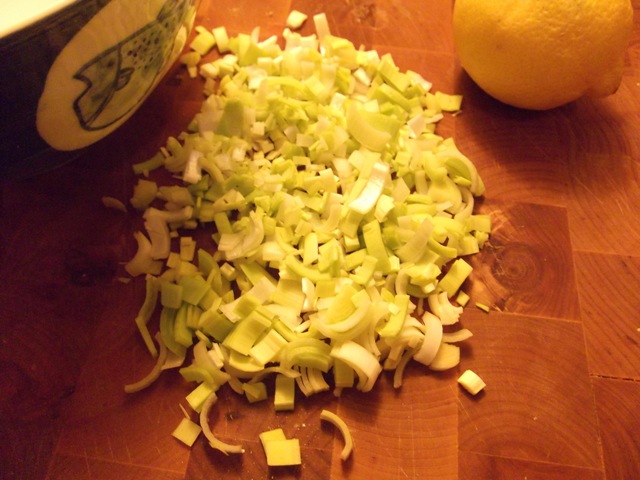 - 1 leek, 1″ thick, white and light-green part only, chopped