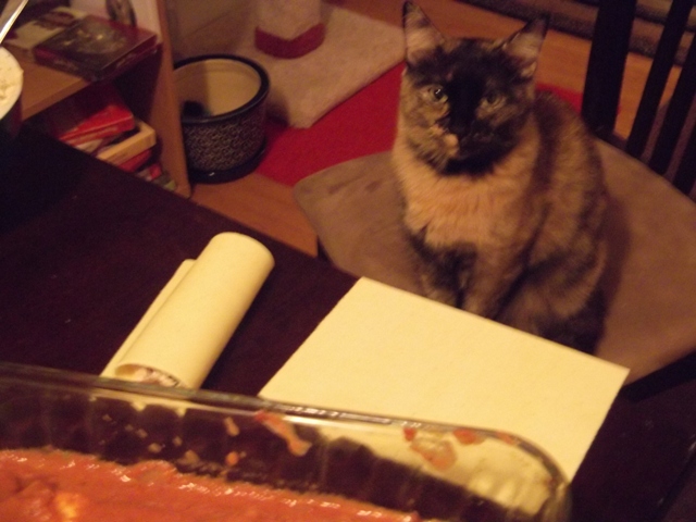 This would be best if you made it with hand-rolled sheets of fresh pasta. Second best is store-bought sheets of fresh pasta, which is what I used. Third would be those hard canneloni tubes you get in a box in the dry pasta aisle, but I have never been able to handle those without crushing them like so many taco shells. It’ll take about five sheets, each one cut in half so that it is roughly 4″x3″ (those Olivieri ones will work just fine).