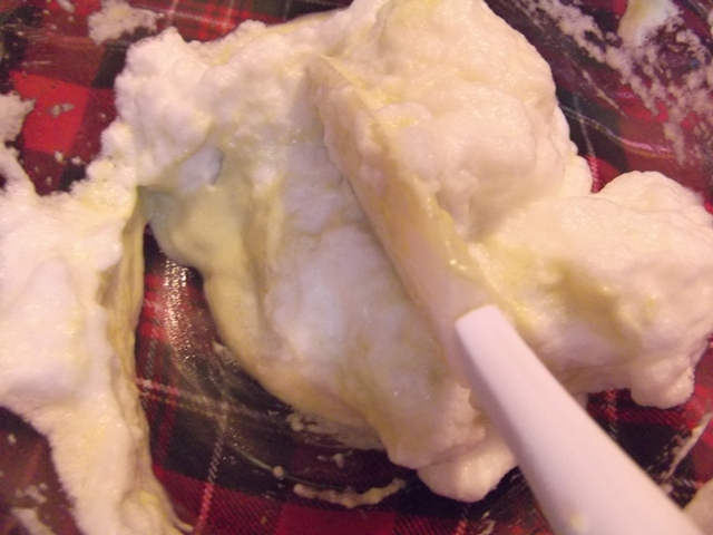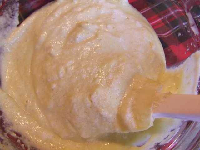 Beat egg whites until stiff peaks form. Combine avocado mixture with dry ingredients, mixing until just combined, then add one-quarter of the egg whites to the mix. Fold batter into remaining egg whites until what results is a fluffy pale green batter cloud.
