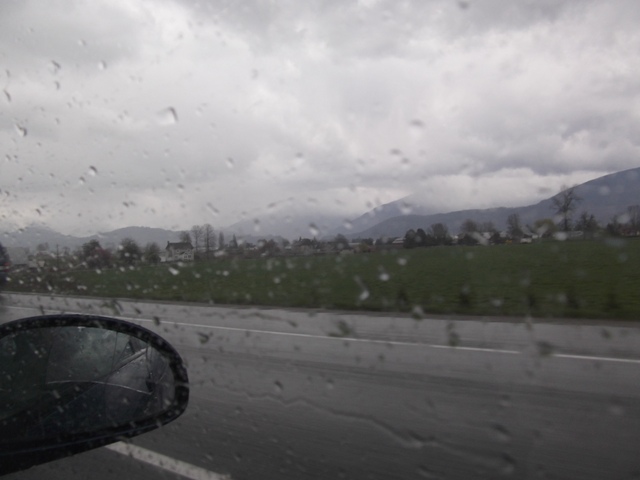 So we hopped in the car and we drove an hour and a half to Hope and the rain was torrential and occasionally turned to hail and Nick kept asking aloud where he had gone so wrong in his life and I didn’t care, because I had my Snuggie and a mix CD full of all the delightfully crappy music I like.
