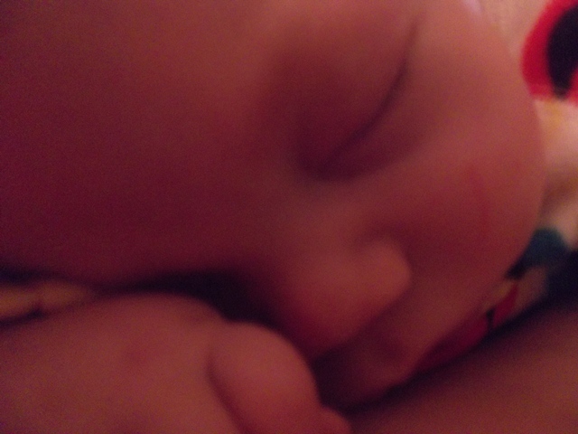 The baby sleeps long hours through the night now, waking only briefly every now and then – he sighs heavily and his eyes flutter, but his fussiness is mostly gone. He’s a bottle baby, so he gets to sleep while I wake every three hours to pump his meals. I keep a lamp on in the living room at night, so when I wake up I can see Nick’s face and the baby’s in the shadows, both of their mouths wide as they breathe deeply, right arms at ninety-degree angles above their heads, snarfling and snoring in their separate beds.