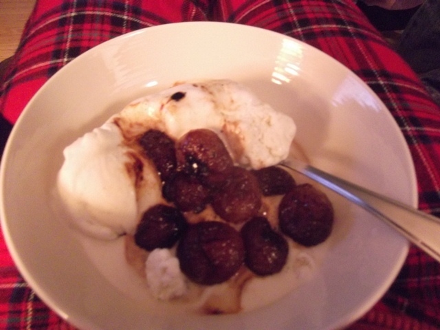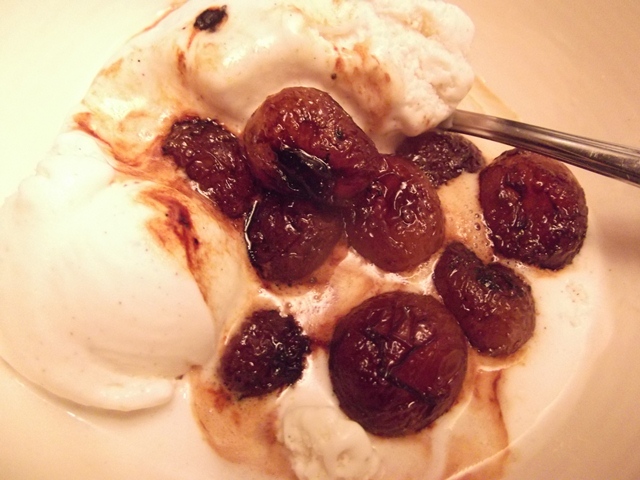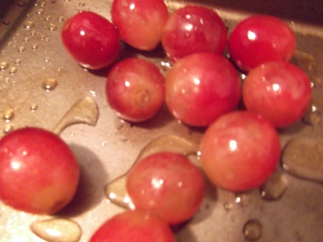 This idea comes from Fine Cooking, with some adaptation. I prefer to use seedless red globe grapes, and to roast them longer than the original recipe calls for. Some olive oil, some maple syrup, and a pinch of salt are all you need. They will take on a jammy, almost molasses taste. Serve these over ice cream.