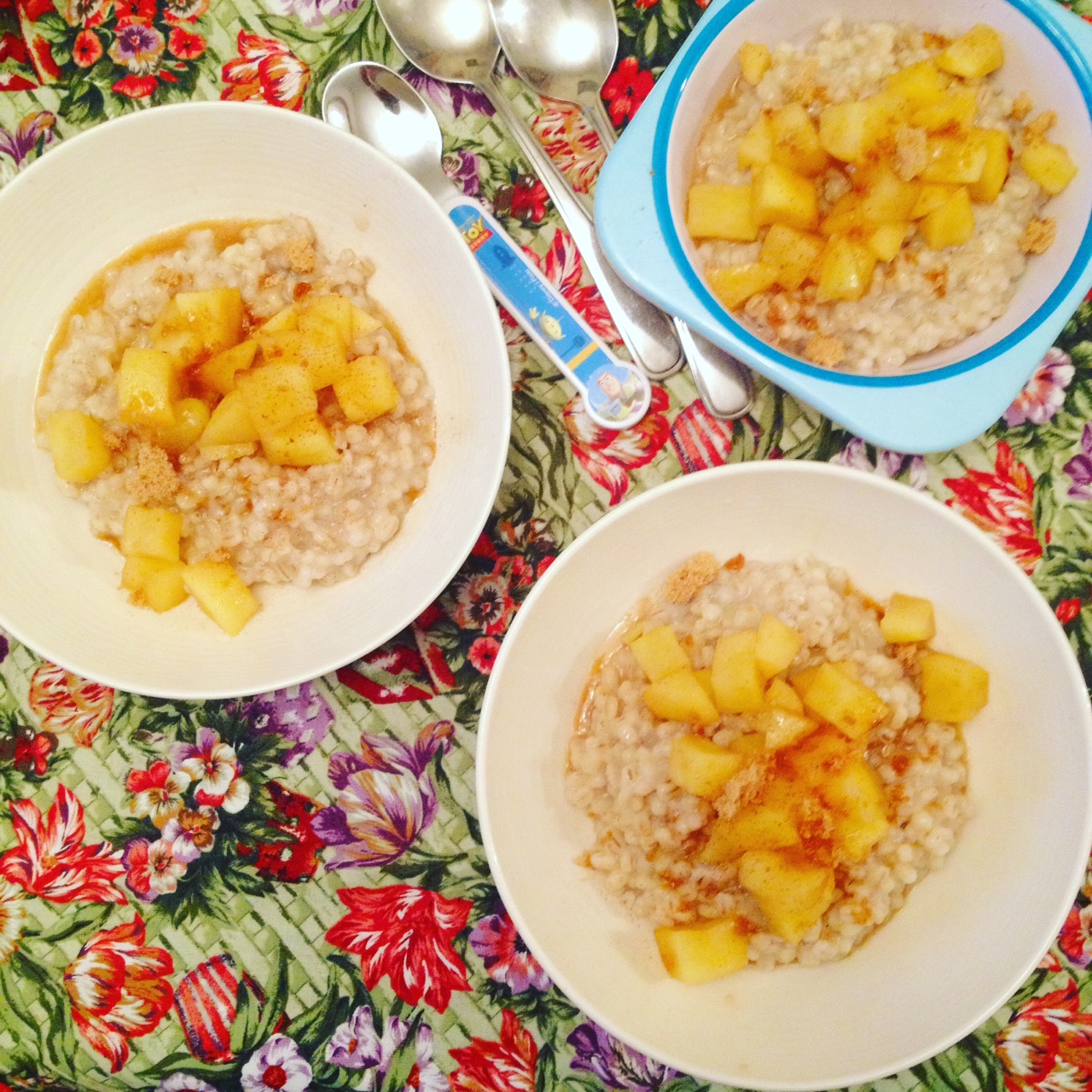 Overnight barley porridge with “baked” apples