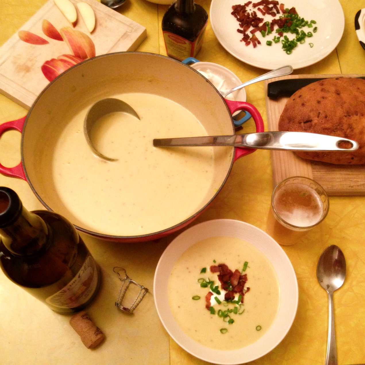 I’ve been tinkering with a version of a soup particular to two countries colonized by the Dutch, which happened to be the perfect soup for today, and for days like these when the rain is relentless and your playlist is just one feeling-sorry-for-self song after another and even Andy Samberg can’t break through the fog of flu season in your head. It’s from Suriname, though there’s something very similar (soto ayam) in Indonesia. It is often served with a bowl of rice on the side; if you’re serving more than four, a side of rice would stretch the dish to serve more people.