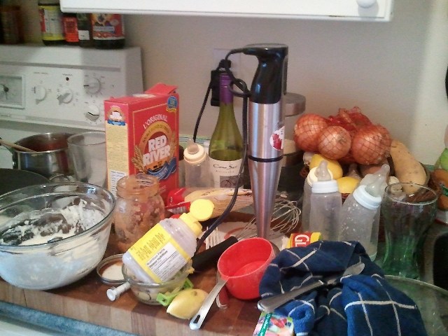 So, because I had to buy a lot of grey and black clothes, and because we were down to our last as far as essential grocery items, and because life is full of surprises, this has been a big spending week, and now we’re poor again. But I wanted turkey burgers, because had ground turkey thighs in the freezer and one last jar of zucchini relish in the cupboard. The only thing we didn’t have was buns. Solution? Homemade hamburger buns.