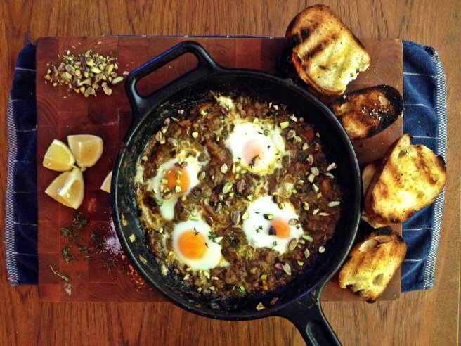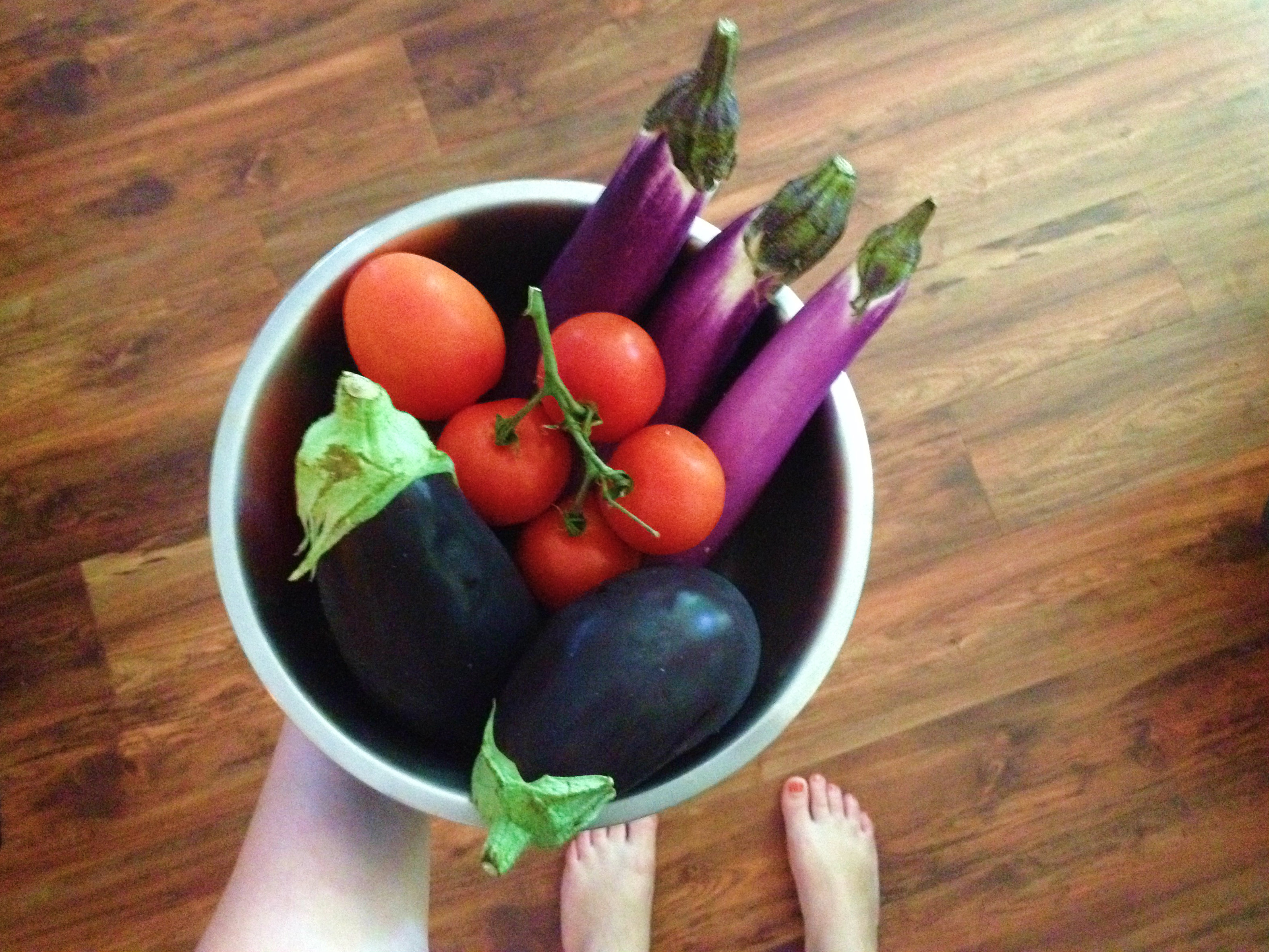 Serve with whatever you have. I have a lot of cucumbers at all times, and there was another tomato leftover. We had herbs wilting. We always have green onions. I made tahdig, because I have rice and time.