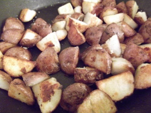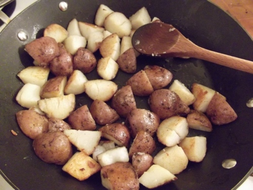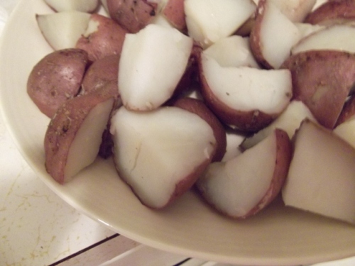 Because a meal based on the holy trinity of meat, cheese, and potatoes can be, uh … rich, set the table with little bowls of acidic, pickly things, like olives and beet pickles and peppadews and gherkins and cocktail onions – whatever you have in your pantry will do, but if you have to make a special trip, make use of a store’s olive bar, where you can buy just a few of everything for not very many dollars.