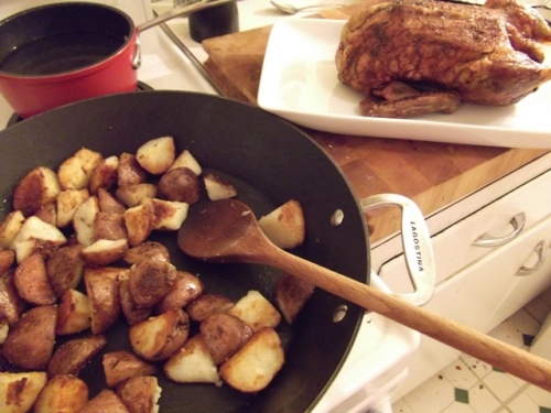 Little ramekins with good salt, freshly ground pepper, and Dijon mustard round the dinner out. The whole thing ends up being an inexpensive, rather European feast, and it is made better with wine or good cold beer. It is a warming treat in the wintertime. You will want to have Beirut playing in the background, and perhaps you and your guests will wear sweaters and it will be snowing.
