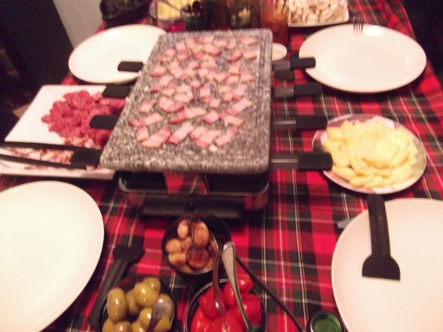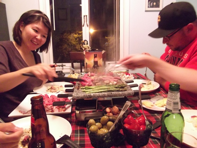 A raclette is a wonderful thing. It’s like a fondue pot, except instead of dipping things into melted cheese, you pour melted cheese over things. We learned about raclette a few years ago in the home of my friend Chelsea and her then-boyfriend, an accented Swiss-German named Marco who was a Physics professor by day and a drummer in a Celtic punk band by night. Raclette is both the name of the apparatus and the type of cheese, though we used good white cheddar and it was delicious.