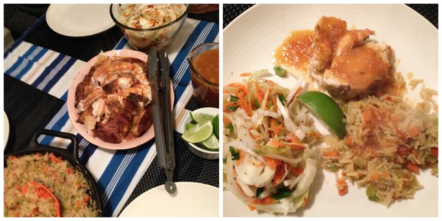Serve with whatever you have. I have a lot of cucumbers at all times, and there was another tomato leftover. We had herbs wilting. We always have green onions. I made tahdig, because I have rice and time.